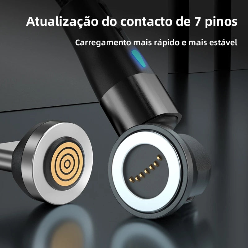 🚀 Por que escolher o Cabo Magnético 540° 3 em 1?